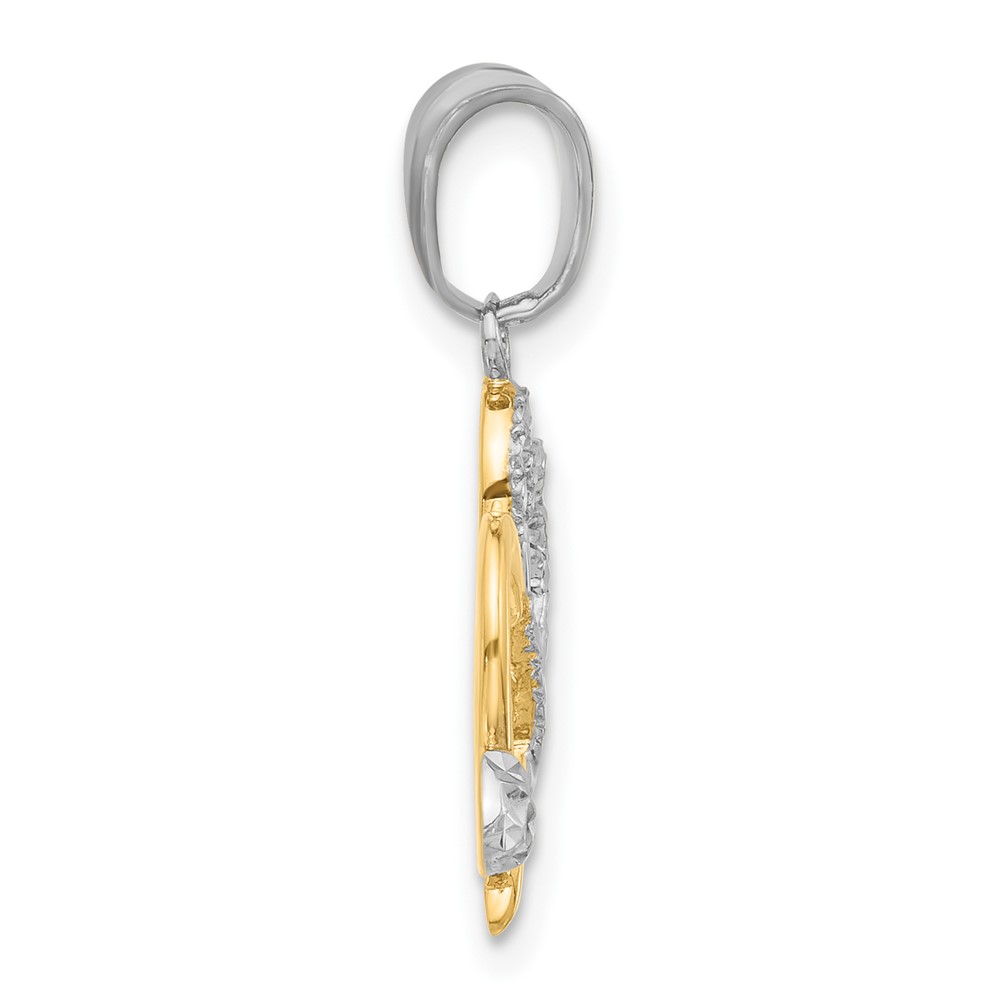 14K with White Rhodium Diamond-cut Hearts and Arrow Pendant