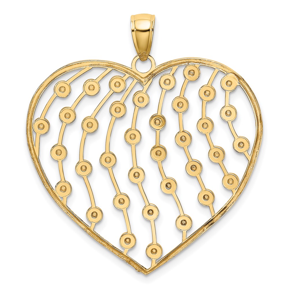 14k with White Rhodium Diamond-cut Large Heart Pendant