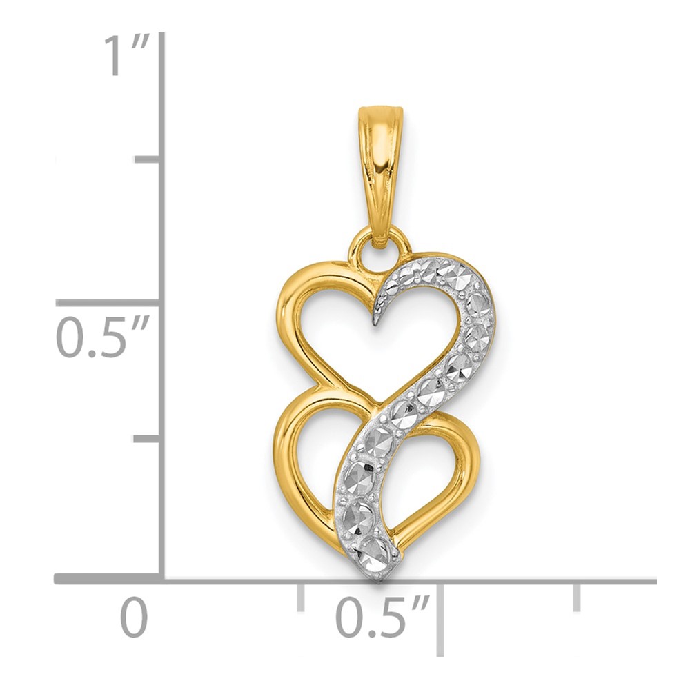 14k with White Rhodium Polished And Brushed Two Hearts Pendant