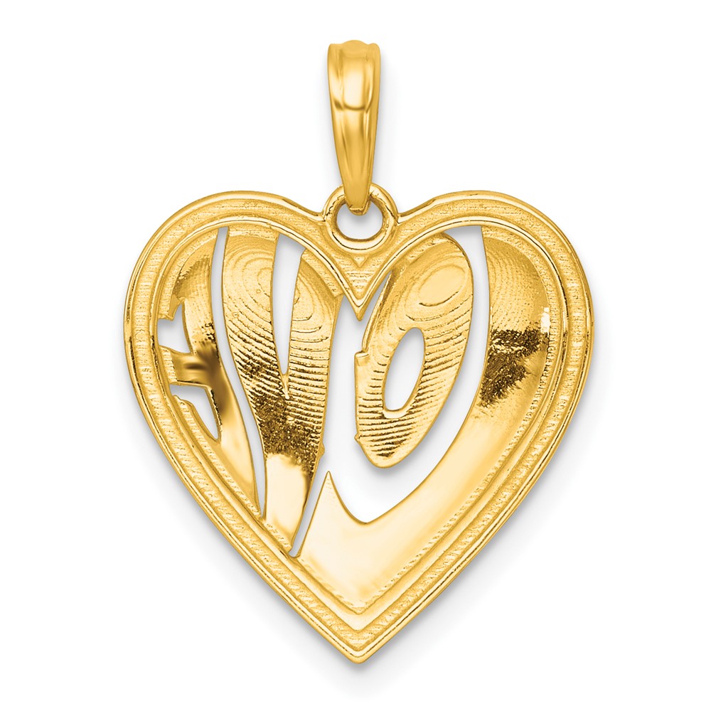 14k with White Rhodium Polished Cut-out LOVE In Heart Pendant
