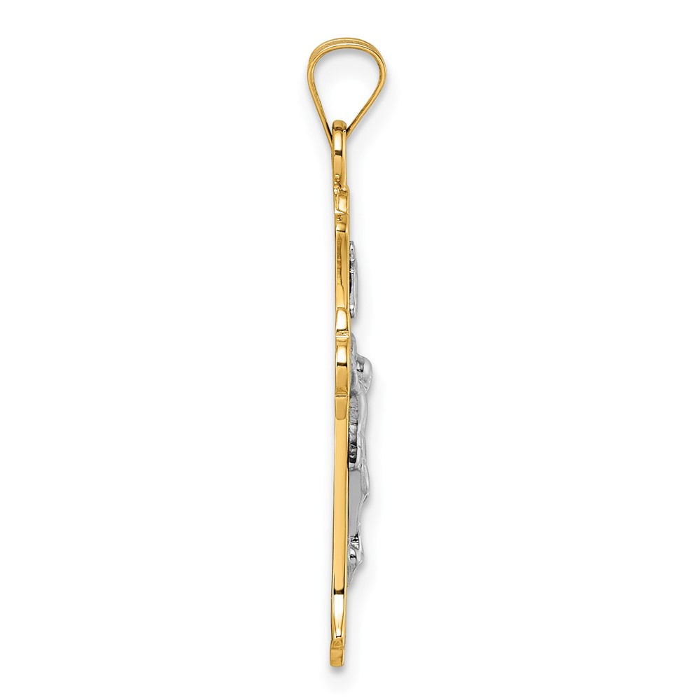 14k with White Rhodium Polished Fleur de Lis INRI Crucifix Cross Pendant