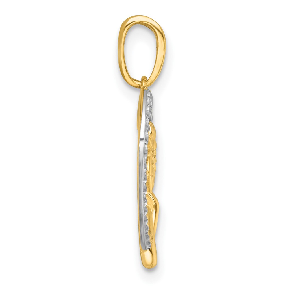 14k with White Rhodium Polished Flower In Twisted Heart Pendant