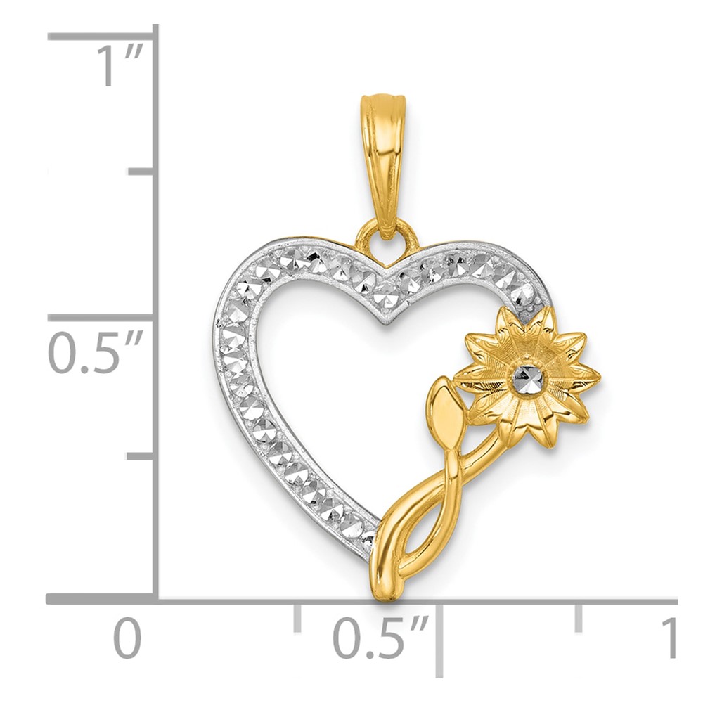 14k Two-tone Diamond-cut Polished Rose In Heart Pendant