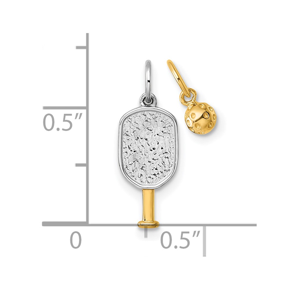 14k with White Rhodium Polished Pickleball Paddle and Ball 2-Piece Charm Pendant Set