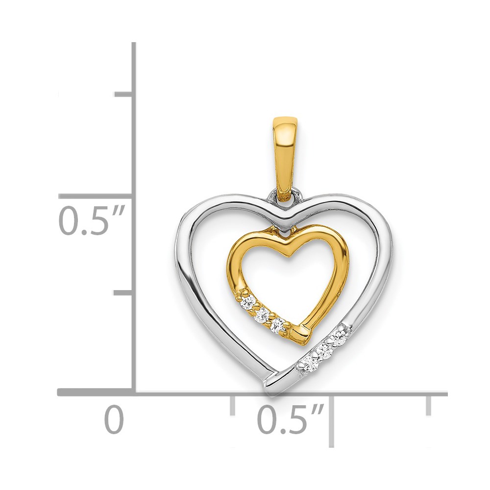 14kt Two-tone Dangling Heart in Diamond Heart Pendant