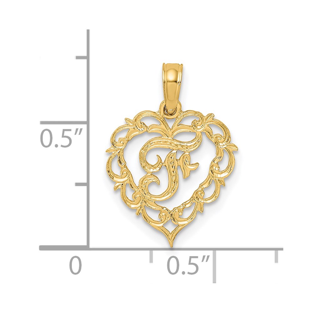14KY Heart Script Letter F Initial Charm