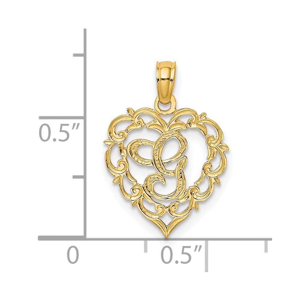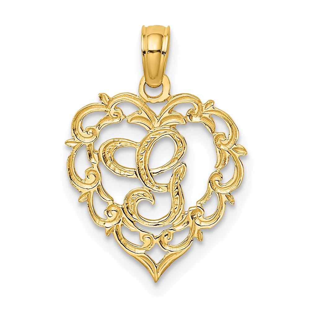 14KY Heart Script Letter G Initial Charm