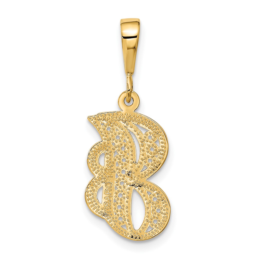 14KY Polished Script Filigree Letter J Initial Pendant