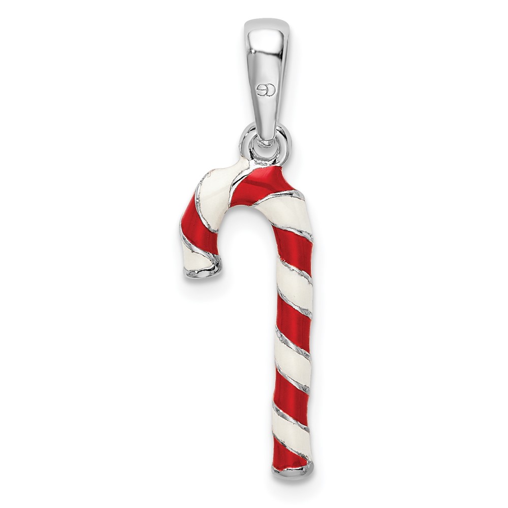 De-Ani Sterling Silver Rhodium-Plated 3D Enameled Candy Cane Pendant