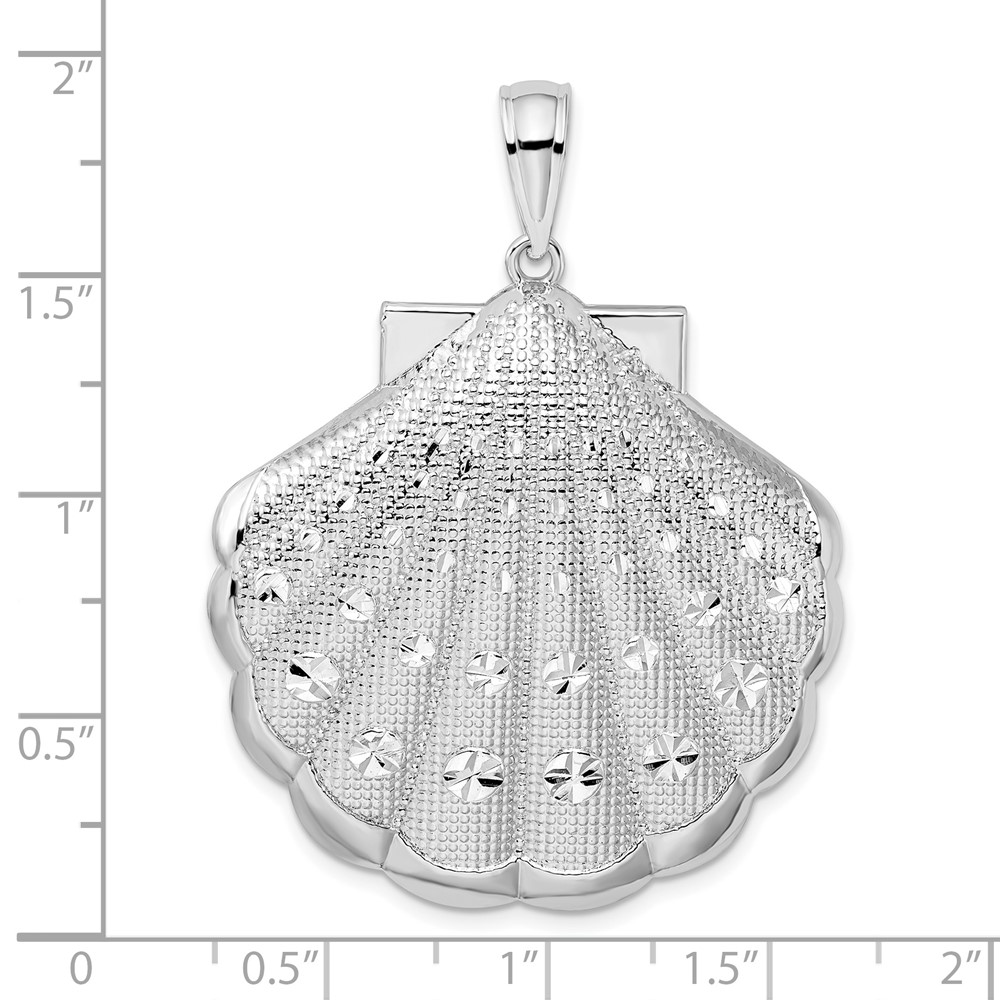 De-Ani Sterling Silver Rhodium-Plated Diamond-Cut Large Scallop Shell Pendant