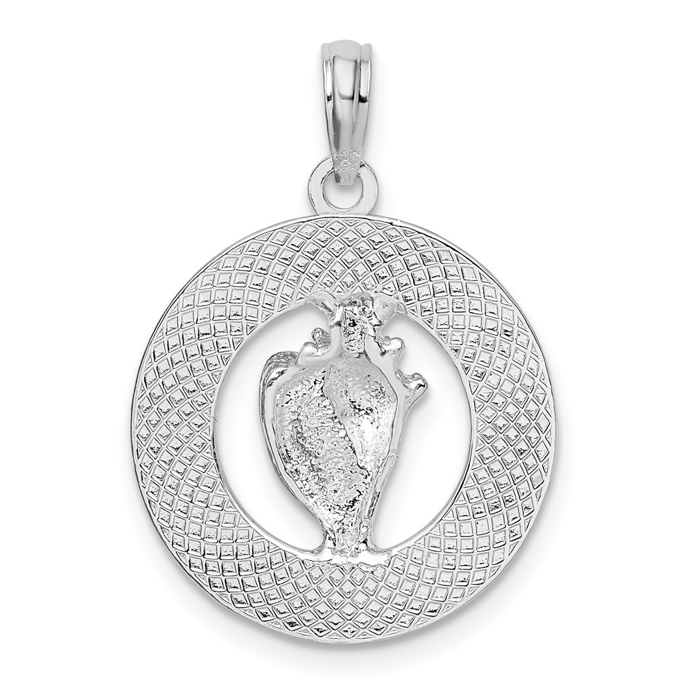 De-Ani Sterling Silver Rhodium-Plated Enameled Bahamas Circle with Shell Pendant