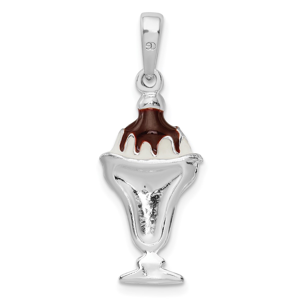 De-Ani Sterling Silver Rhodium-Plated Enameled Chocolate Sundae Pendant