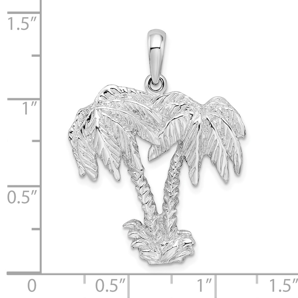 De-Ani Sterling Silver Rhodium-Plated Polished and Textured Double Palm Tree Pendant