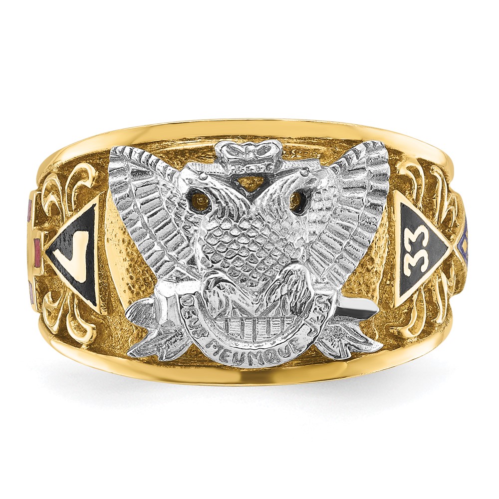 IBGoodman 10k Two-tone Men’s Polished and Textured with Multi-color Enamel Active 33rd Degree Masonic Ring