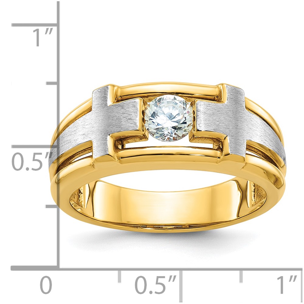 IBGoodman 14k Two Tone 3/4 carat Lab Grown Diamond VS/SI+ G+ Complete Polished and Satin Men’s Ring