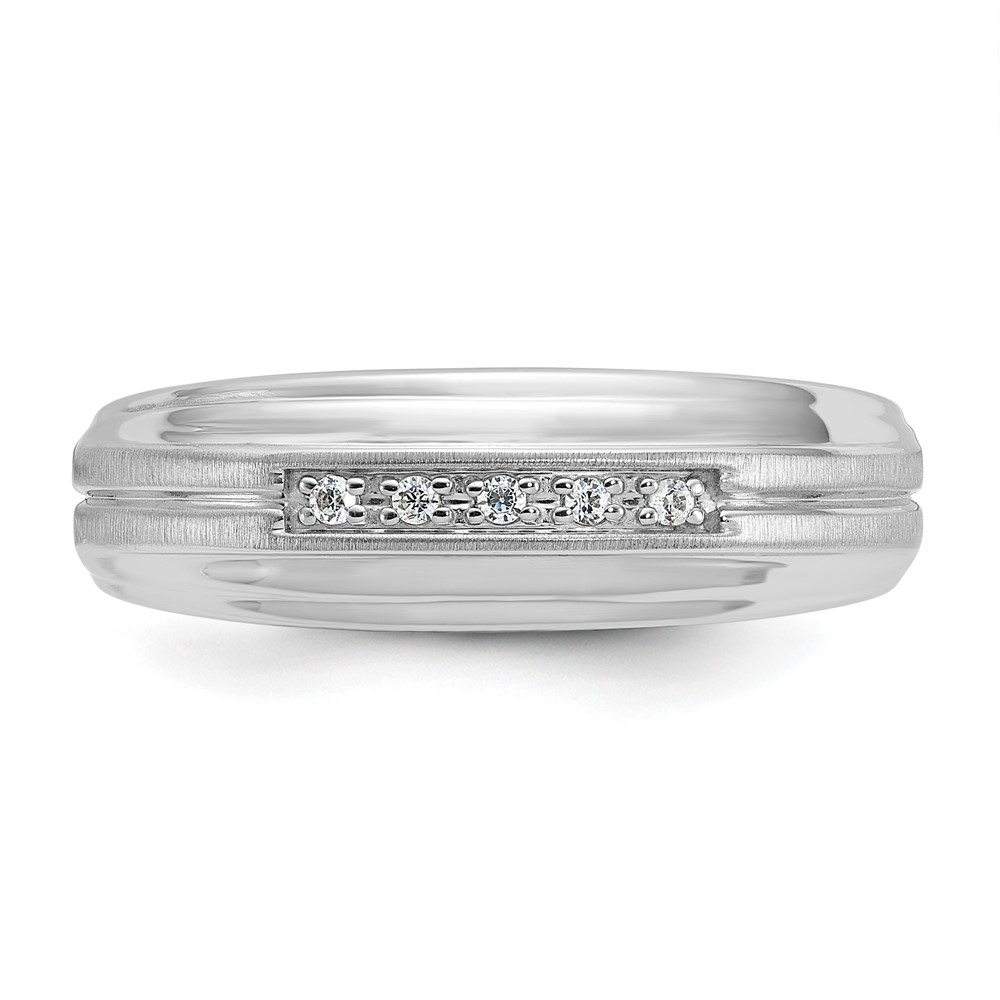 IBGoodman 10k White Gold Men’s Polished Satin and Grooved 5-Stone 1/20 Carat A Quality Diamond Ring