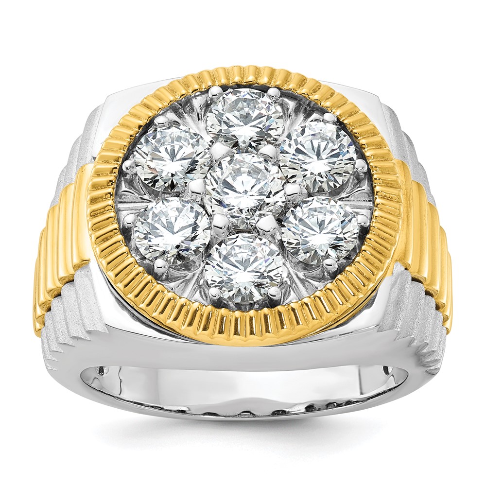 IBGoodman 14k Two-Tone 3 carat Lab Grown Diamond VS/SI+ G+ Complete Ribbed Men’s Cluster Ring