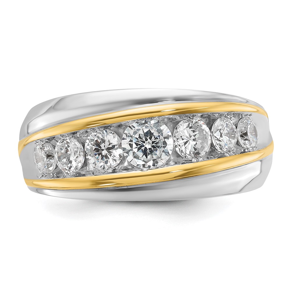IBGoodman 14k Two-tone Men’s Polished and Grooved 7-Stone 1 1/2 Carat AA Quality Diamond Ring
