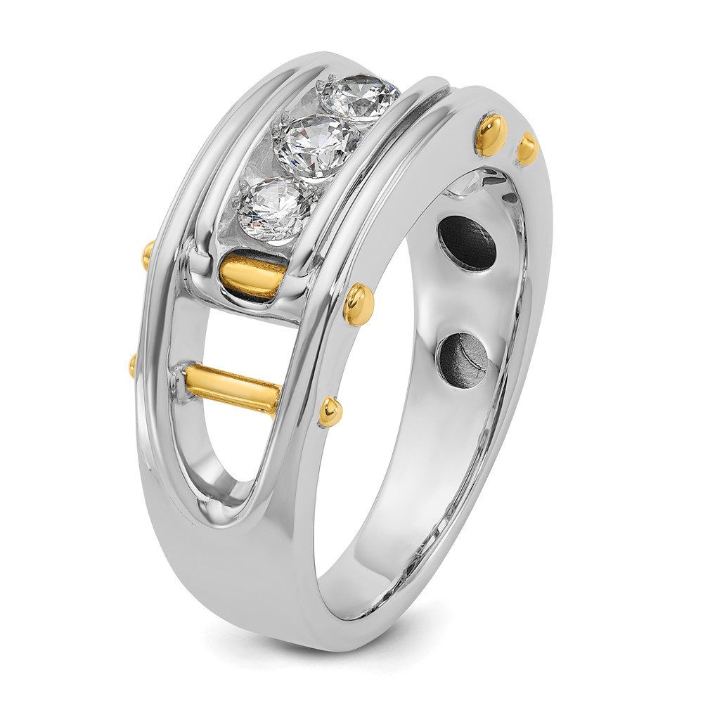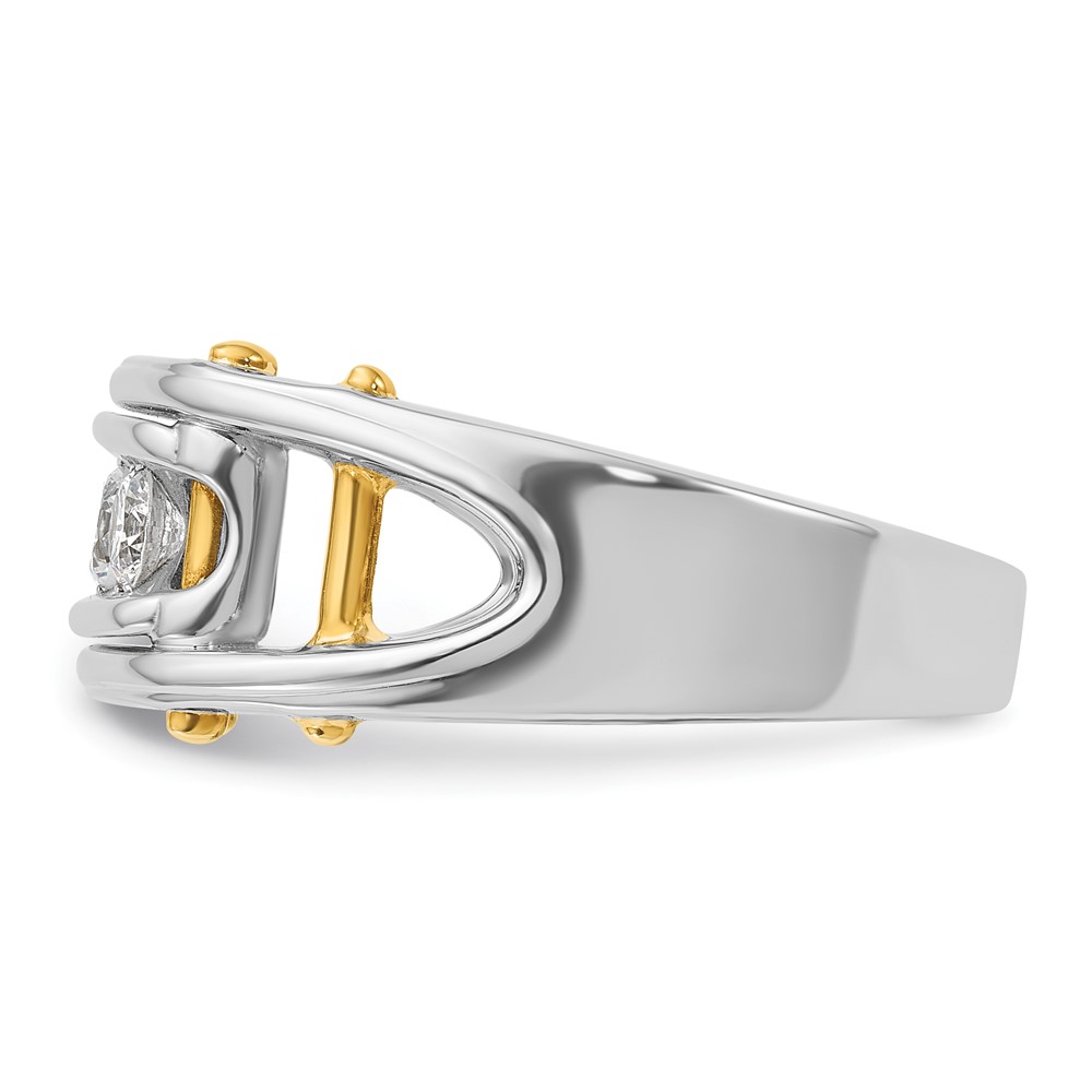 IBGoodman 14k Two-tone Men’s Polished Grooved and Cut-Out 3-Stone 1/2 Carat AA Quality Diamond Ring