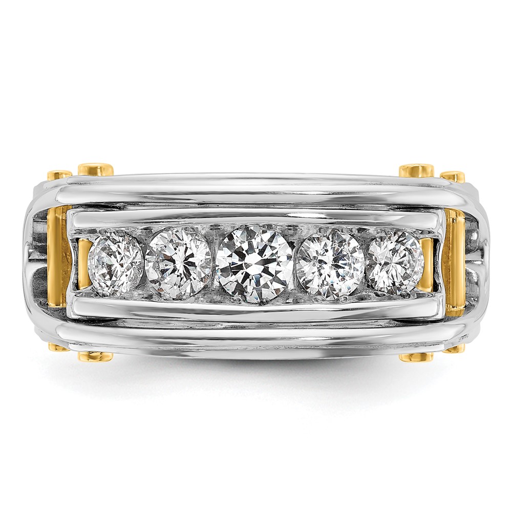 IBGoodman 14k Two-tone Men’s Polished Grooved and Cut-Out 5-Stone 1 Carat AA Quality Diamond Ring