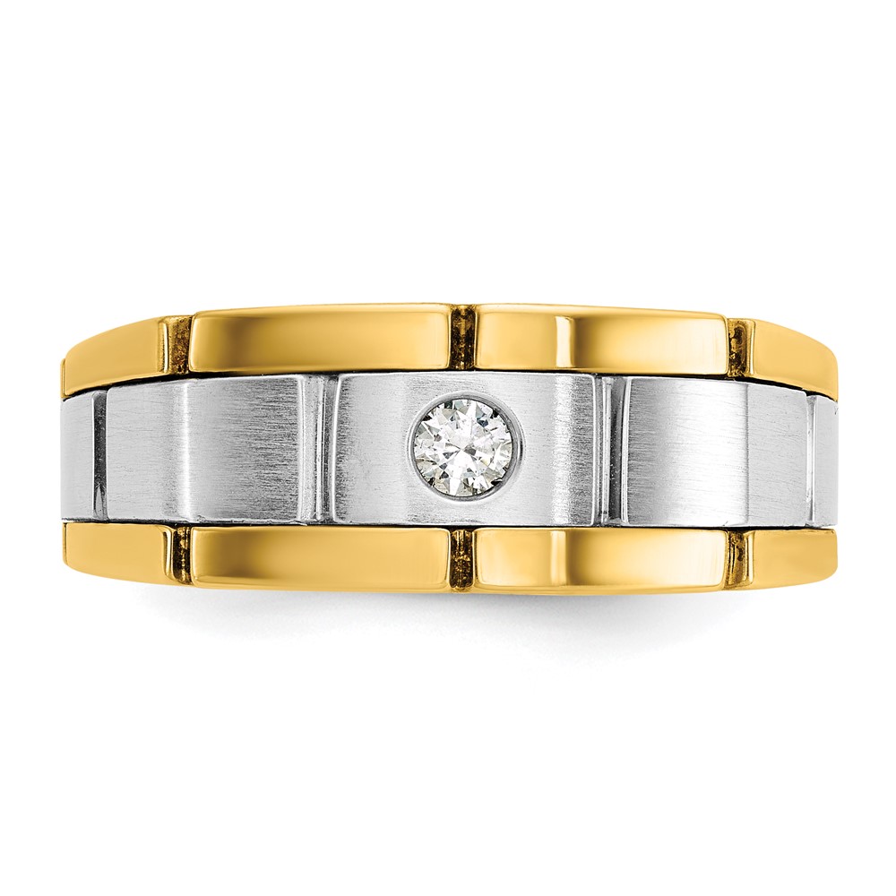 IBGoodman 14k Two-tone Men’s Polished Satin and Grooved 1/10 Carat AA Quality Diamond Ring