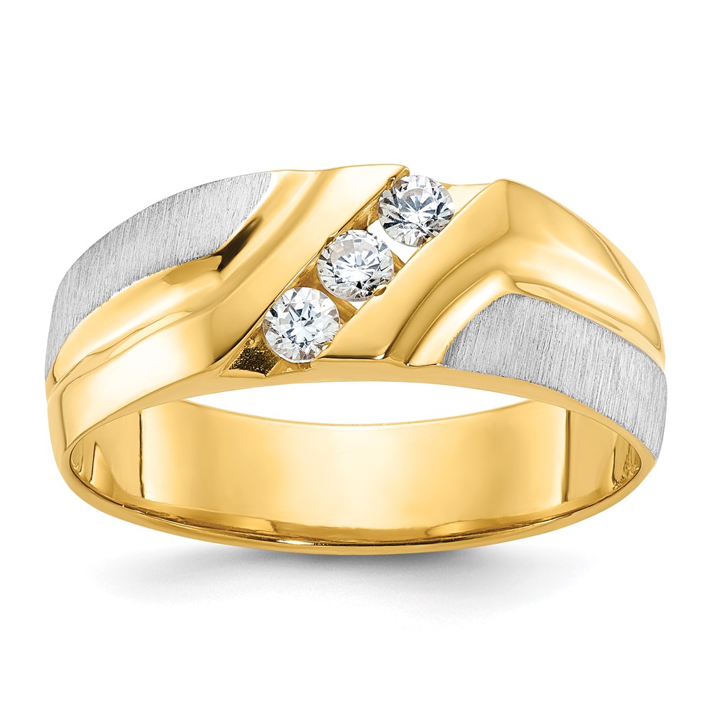 IBGoodman 14k Two-tone Men’s Polished Satin and Grooved 3-Stone 1/4 Carat AA Quality Diamond Ring