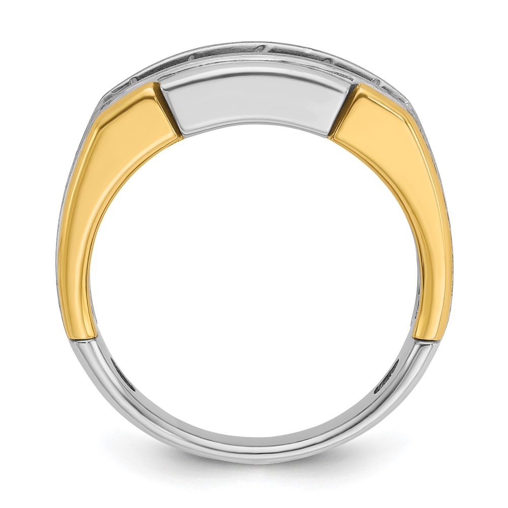 IBGoodman 14k Two-tone Men’s Polished Satin and Grooved 5-Stone 1 Carat AA Quality Diamond Ring