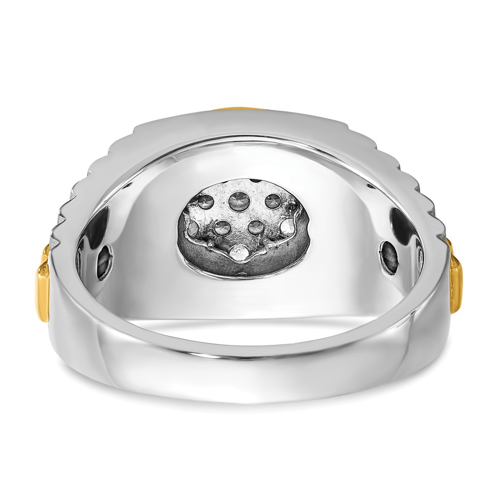 IBGoodman 14k Two-tone Men’s Polished Satin and Ribbed 1/2 Carat AA Quality Diamond Round Cluster Ring