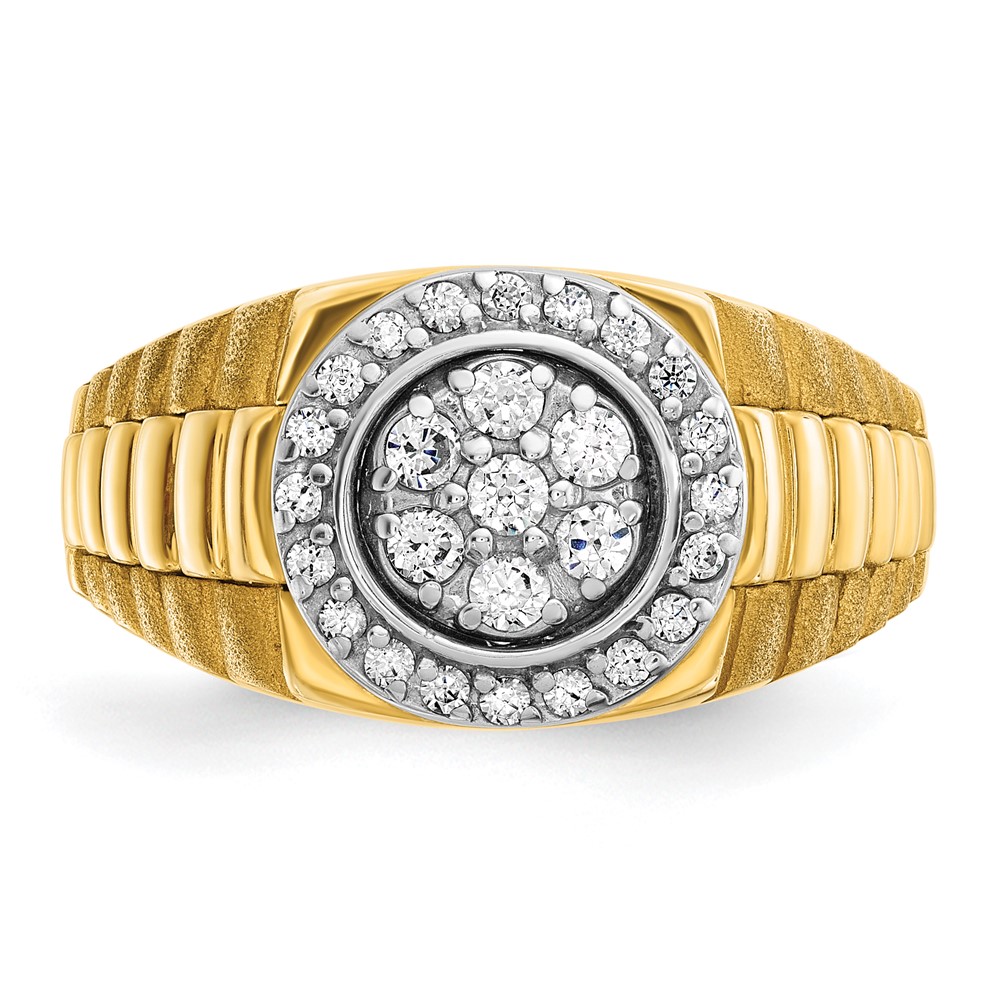 IBGoodman 14k Two-tone Men’s Polished Satin and Ribbed Round 1/2 Carat AA Quality Diamond Cluster Ring