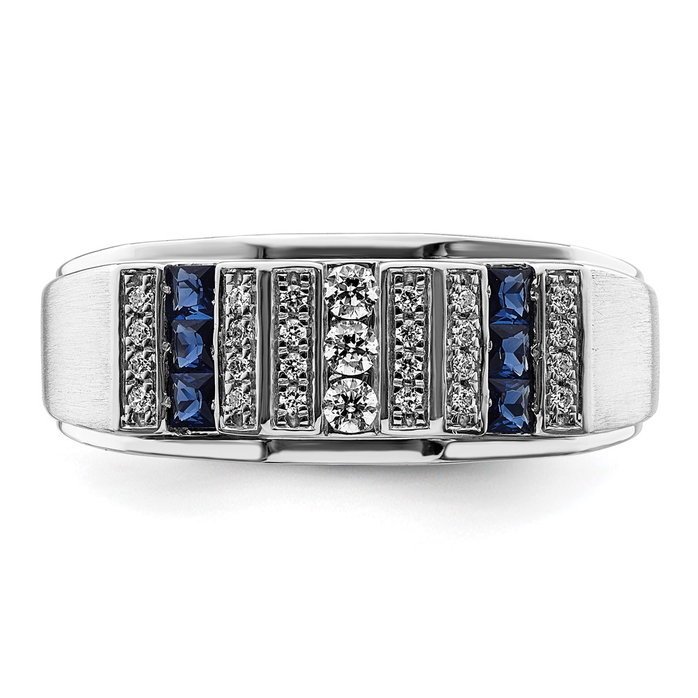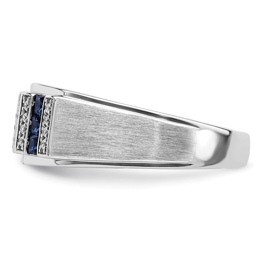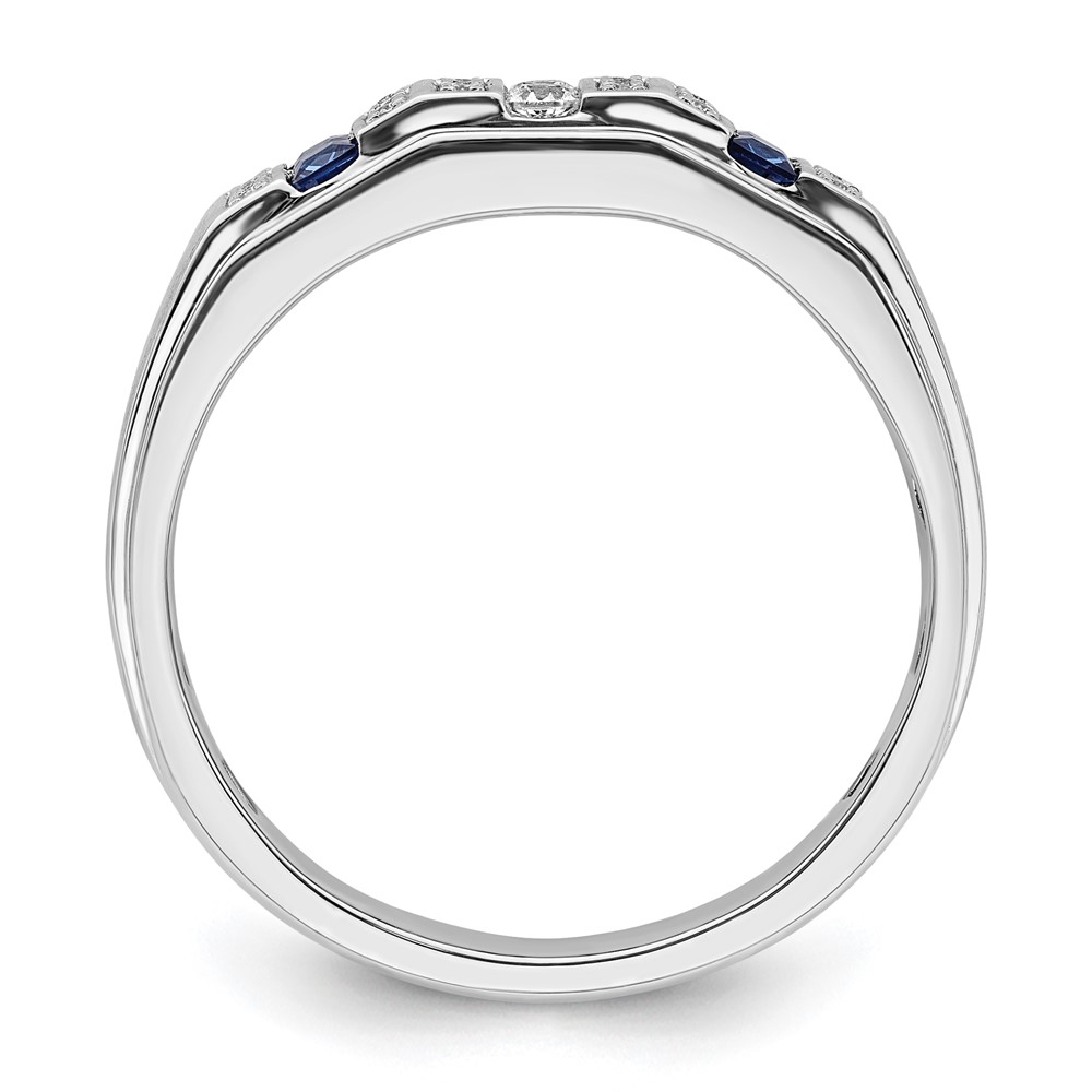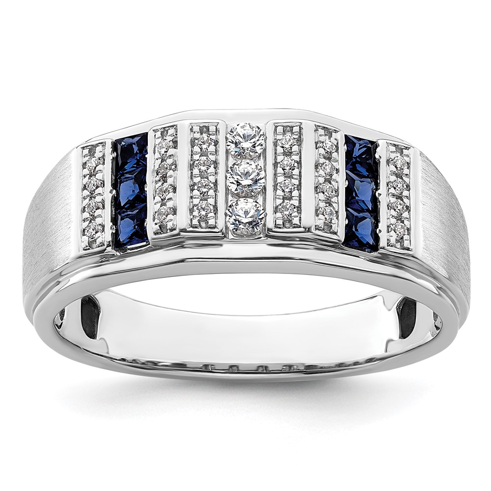 IBGoodman 14k White Gold 1/5 carat Lab Grown Diamond VS/SI+ G+ and Lab Created Blue Sapphire Complete Men’s Ring