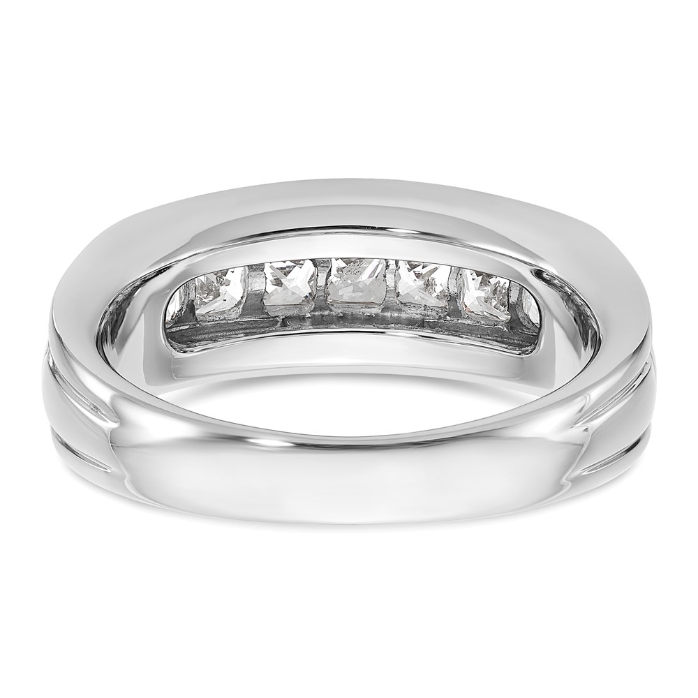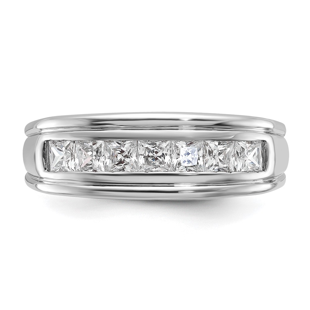 IBGoodman 14k White Gold Men’s Polished and Grooved 7-Stone Square 1 Carat AA Quality Diamond Ring