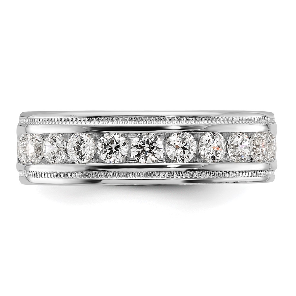 IBGoodman 14k White Gold Men’s Polished and Milgrain 11-Stone 1 Carat AA Quality Diamond Ring