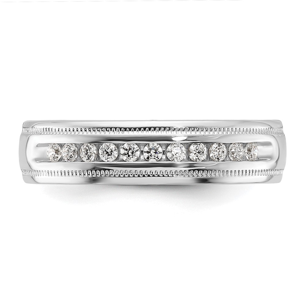 IBGoodman 14k White Gold Men’s Polished and Milgrain 11-Stone Ring Mounting