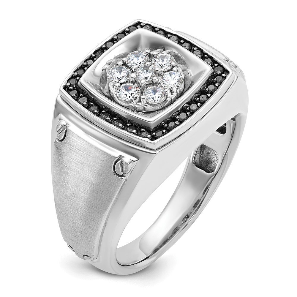 IBGoodman 14k White Gold Men’s Polished and Satin 3/4 Carat AA Quality Black and White Diamond Halo Cluster Ring