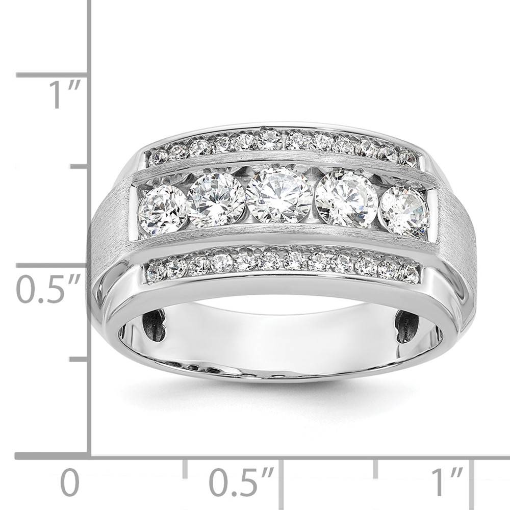 IBGoodman 14k White Gold Men’s Polished and Satin 3-Row 2 1/8 Carat AA Quality Diamond Ring