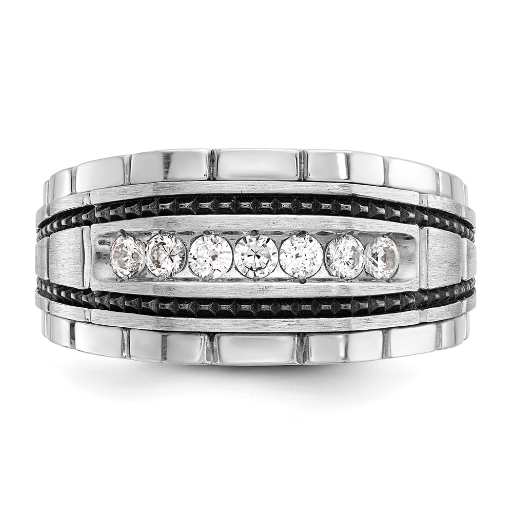 IBGoodman 14k White Gold Men’s Polished Satin and Textured 7-Stone Ring Mounting