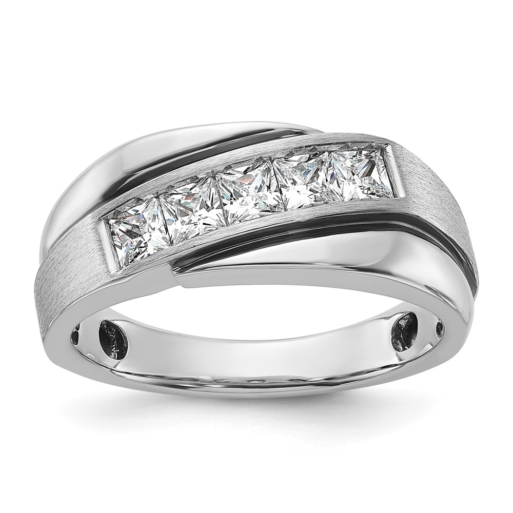 IBGoodman 14k White Gold with Black Rhodium 1 carat Lab Grown Diamond VS/SI+ G+ Complete Polished Satin and Grooved Men’s Ring