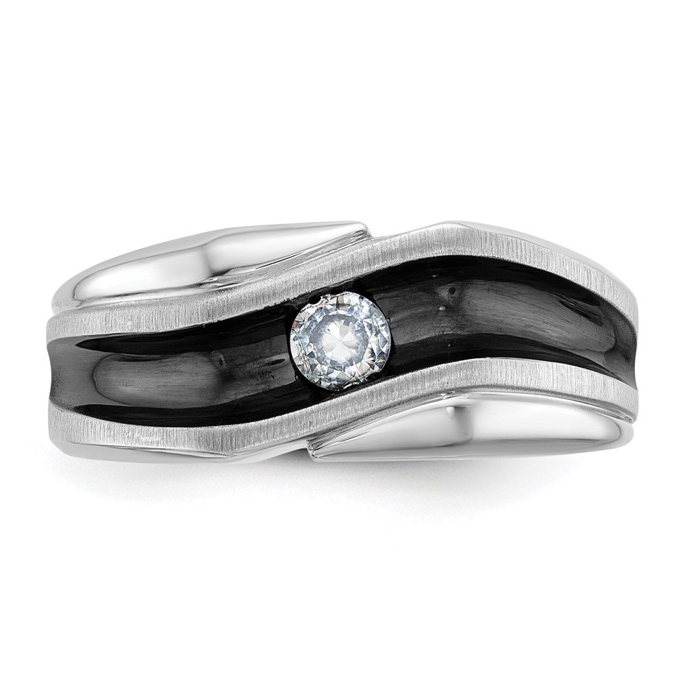 IBGoodman 14k White Gold with Black Rhodium Men’s Polished Satin and Grooved Solitaire 1/5 Carat AA Quality Diamond Ring