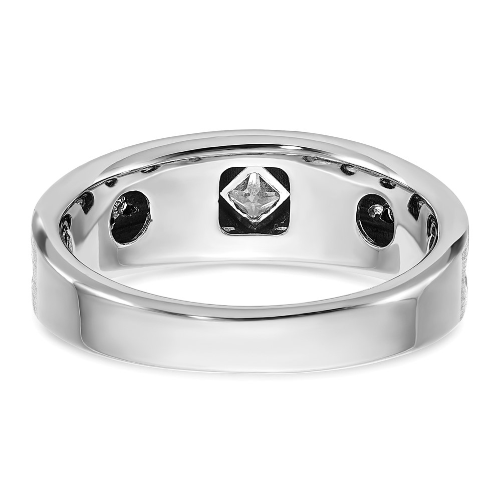 IBGoodman 14k White Gold with Black Rhodium Polished Satin and Grooved 1/2 Carat AA Quality Black and White Diamond Ring