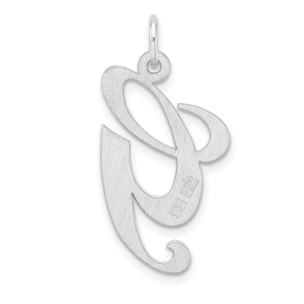 Large Sterling Silver Rhodium-plated Fancy Script Letter G Initial Charm