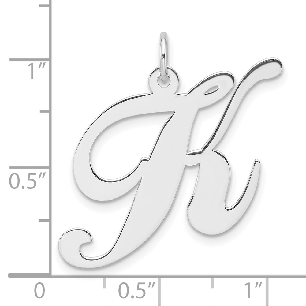 Large Sterling Silver Rhodium-plated Fancy Script Letter K Initial Charm