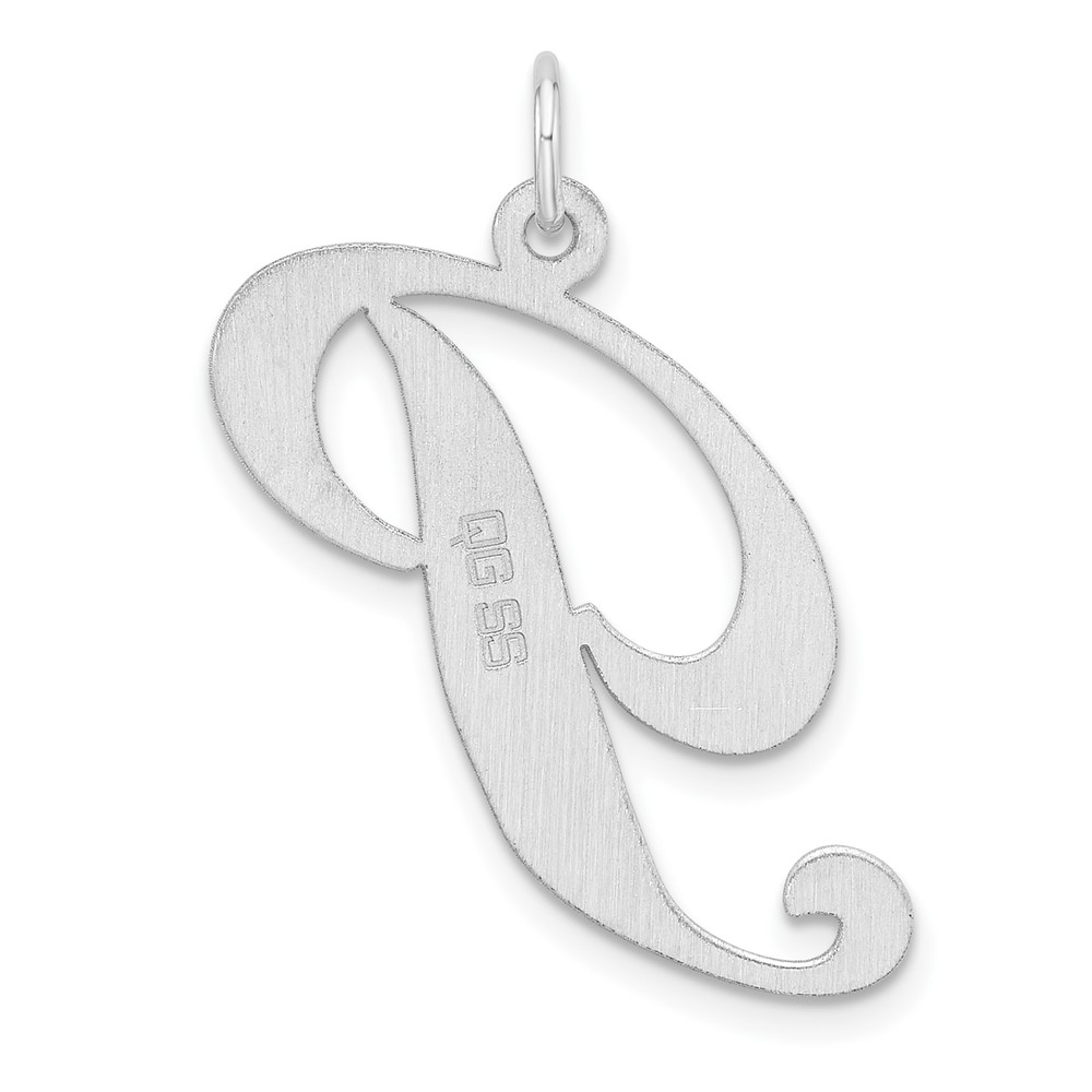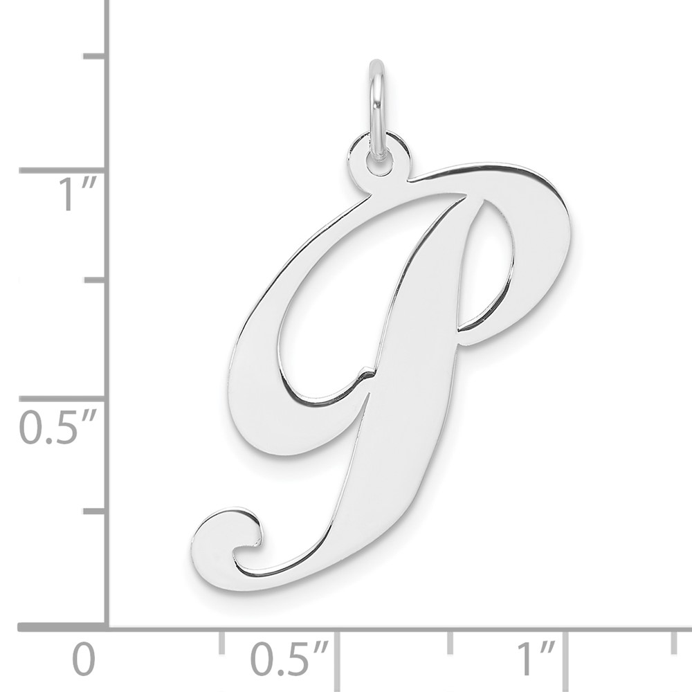 Large Sterling Silver Rhodium-plated Fancy Script Letter P Initial Charm