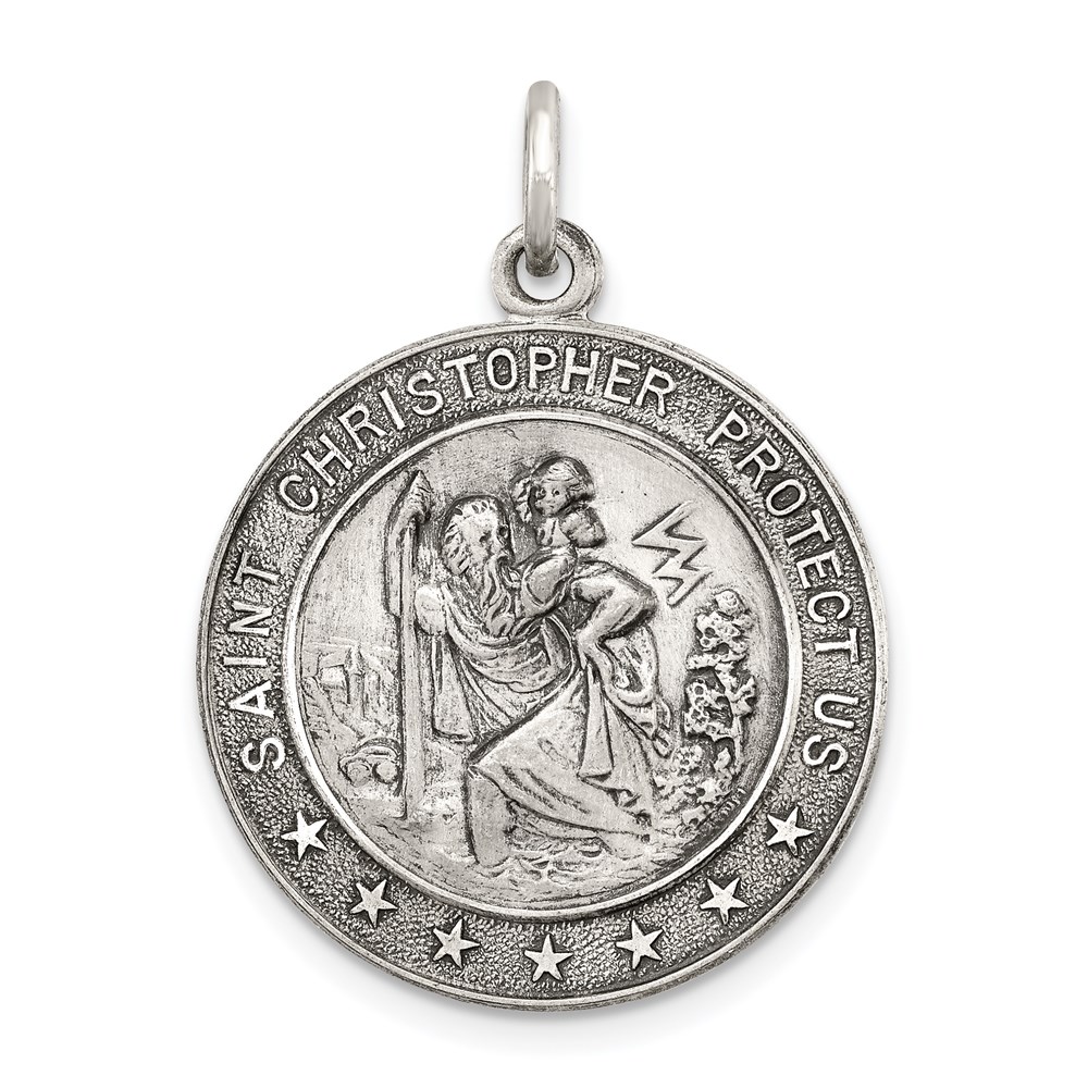 Sterling Silver Antiqued St. Christopher Medal