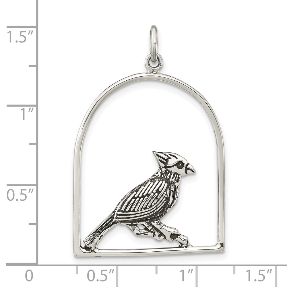 Sterling Silver Antiqued Bird on Branch in Cage Pendant