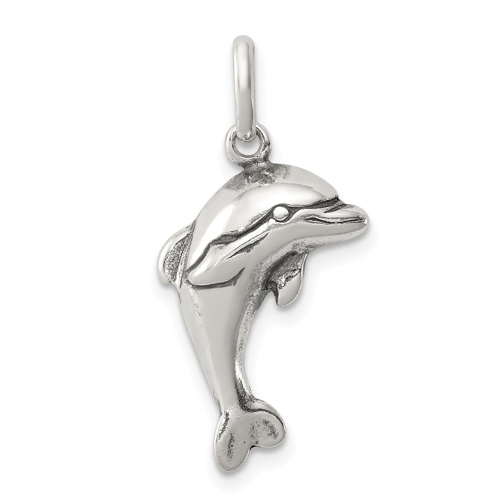 Sterling Silver Rhodium-plated Polished Dolphins Pendant
