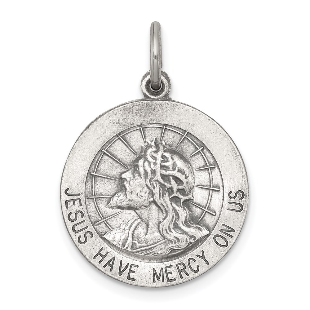 Sterling Silver Antiqued Jesus Have Mercy Medal