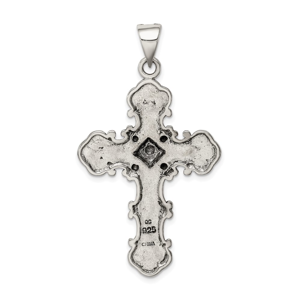 Sterling Silver Rhodium-plated CZ Cross Pendant