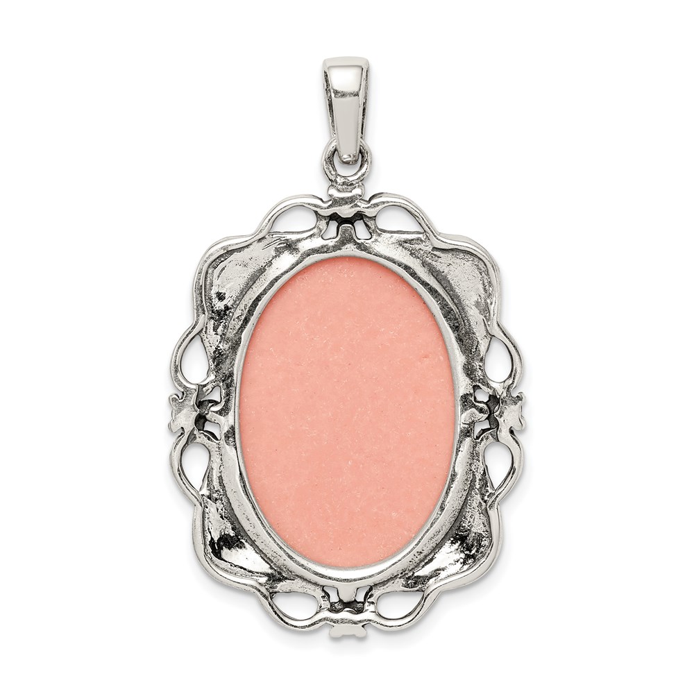 Sterling Silver Antiqued Marcasite Plastic Pink Cameo Pendant