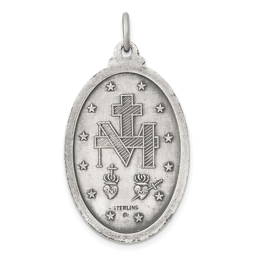 14k White Gold Polished and Satin Solid Miraculous Medal Round Pendant