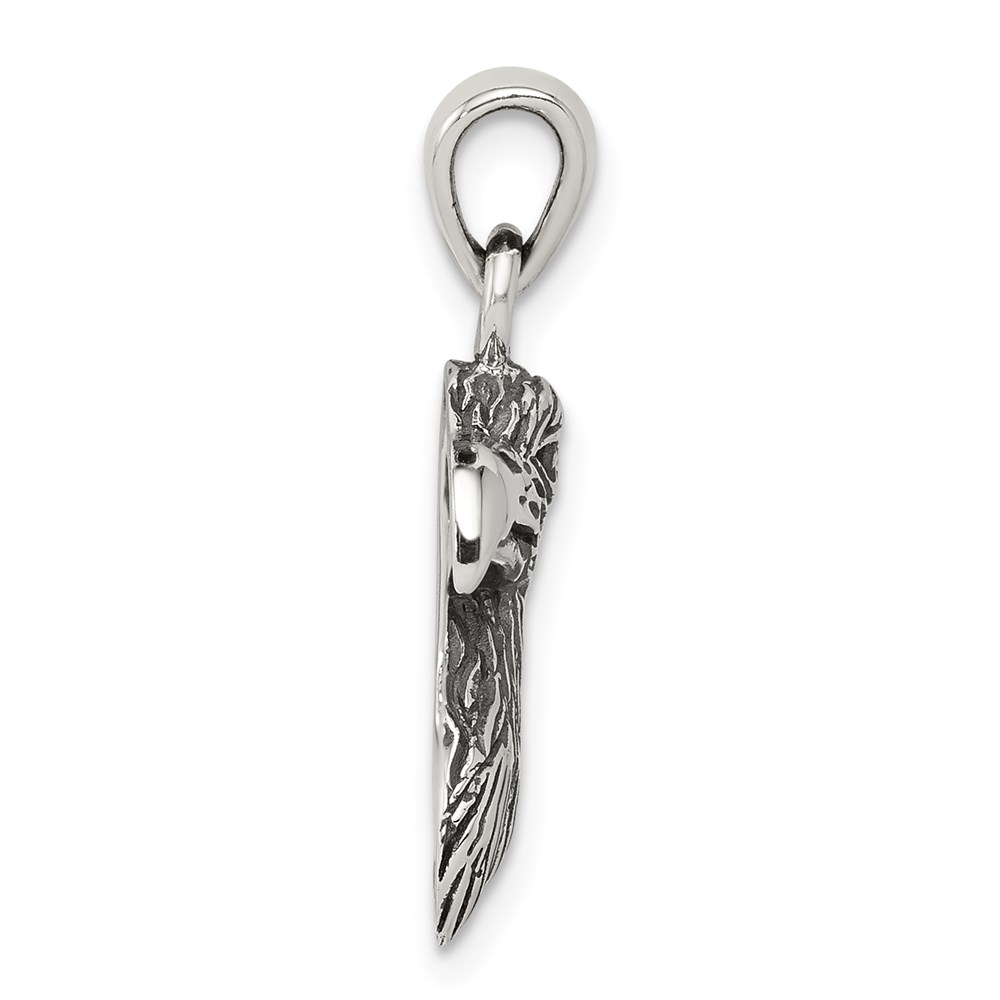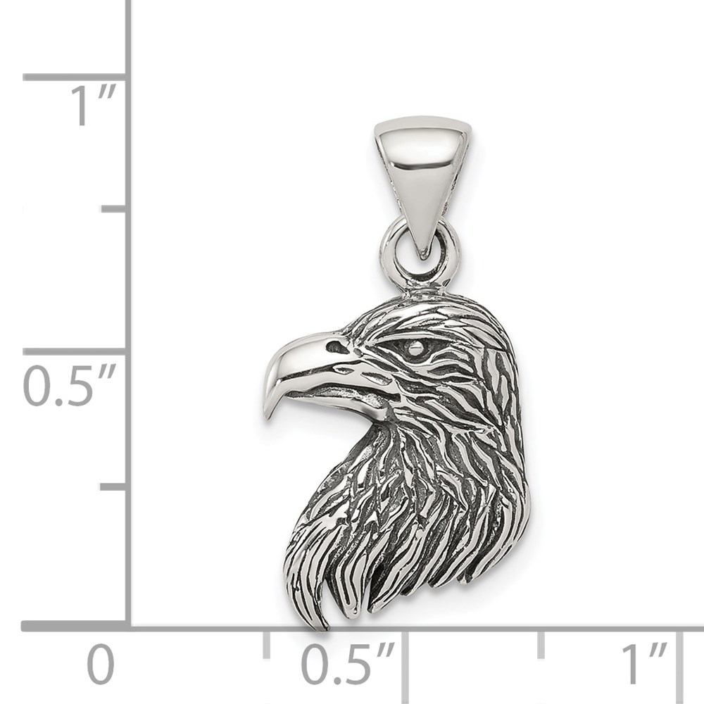 Sterling Silver Antiqued Polished Textured Eagle Head Pendant